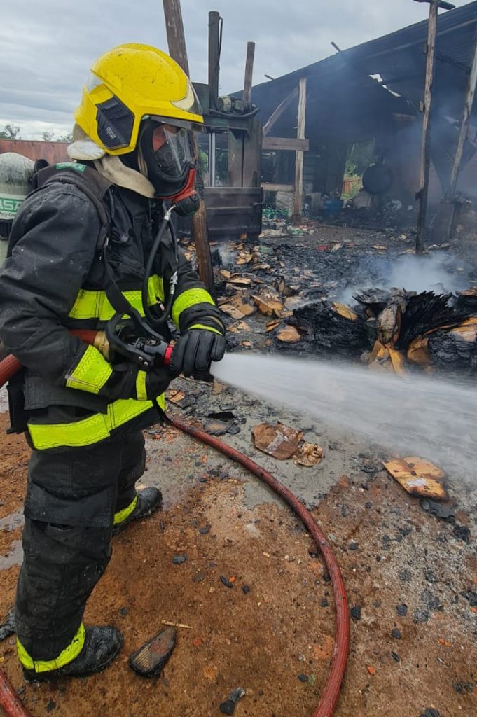 O depósito de uma empresa de reciclagem foi atingido por um incêndio na tarde deste sábado, 26, em Mato Leitão. O Corpo de Bombeiros de Venâncio Aires relata que foi acionado às 14h45 para a ocorrência. O imóvel fica à margem da RSC-453.