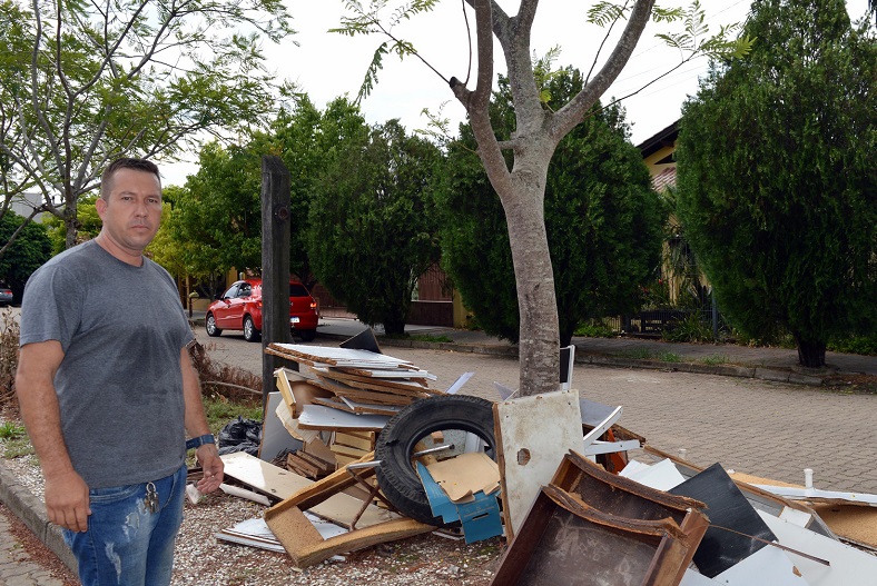 O servidor Ederson Gularte disse que não lembra quantas vezes recolheu o material jogado na calçada | Foto: Erni Bender/Divulgação