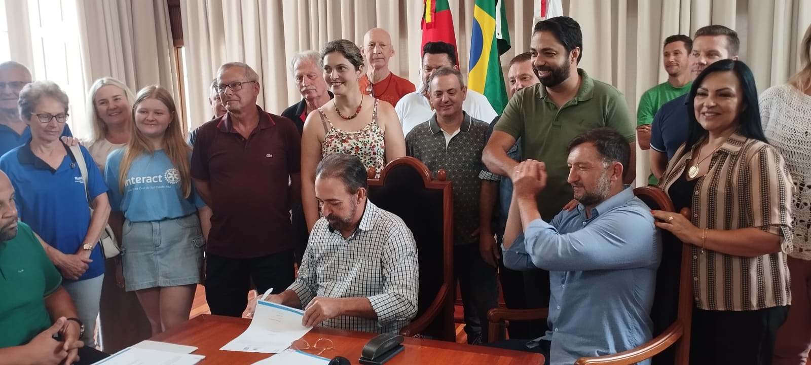 O deputado federal Marcelo Moraes (PL) oficializou a entrega de emenda de R$ 2 milhões em benefício de Santa Cruz do Sul. Durante reunião no Salão Nobre do Palacinho, na tarde desta quinta-feira, 6, o parlamentar apresentou os recursos, que serão destinados para a realização de diferentes obras, como o coreto que integrará o Parque do Imigrante, na Granja Municipal – será construído pela Empresa Agudense, com contrapartida do município; a pavimentação da entrada Grasel, em Monte Alegre – feita pela Di Trevi; pavimentação em Cerro Alegre Baixo – feita pela Di Trevi; pavimentação dos trechos 1 e 2 do Arroio do Couto – feita pela Construtora Giovanella.