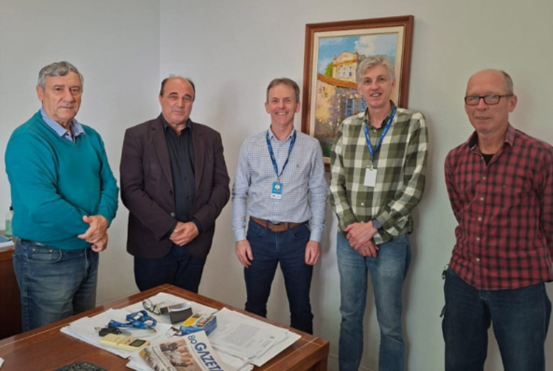 Na passagem por Santa Cruz, sua comitiva fez visita de cortesia à Gazeta. Zé Nunes esteve acompanhado de seu assessor, Rivaldo Ferron, de Sananduva, que por uma década foi diretor de Formação e Educação na Cresol Central SC/RS, e de Albino Gewehr, técnico agrícola que é do círculo de relações do deputado no Vale do Rio Pardo. Foram recebidos na empresa pelo presidente executivo Sydney de Oliveira, pelo diretor de Conteúdo Multimídia, Romar Rudolfo Beling; e pelo conselheiro de administração Jones Alei da Silva.