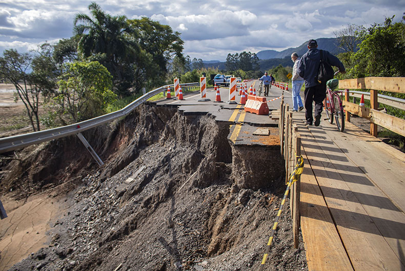 Além dos inúmeros prejuízos causados pelas enxurradas, os moradores da localidade de Linha do Rio, no interior de Candelária, estão convivendo com outro problema: o deslocamento até a cidade. O único acesso, pela RSC-287, está bloqueado devido à destruição de partes da ponte sobre o Rio Pardo e também da pista. A única alternativa para os pedestres é fazer a travessia do rio por uma passadeira montada pelo Exército. Apesar de resolver o problema do isolamento, é necessário um deslocamento muito maior que o habitual.
