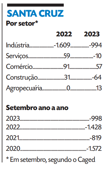 Mesmo tendo sido o setor com a maior geração de vagas, em Santa Cruz no nono mês do ano, com 57 positivas, o comércio ainda ficou abaixo de 2022, quando teve 91 novas oportunidades. No comparativo com igual período do ano passado, a agropecuária, proporcionalmente, teve o melhor resultado, aumentando de zero para 13 empregos. Ainda que os números sejam pequenos, setembro de 2023 só perde para 2021, levando-se em consideração os dados do “novo” Caged, que foi implantado em 2020.