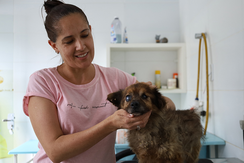 Ela disse que viu a situação do animal e não quis deixá-lo perdido pela rua. “Uma moça tentou tirá-lo da via, mas ele voltava. Ela disse que não poderia levar pois estava sem carro, então eu peguei. Todos os carros pararam para eu alcançá-lo”, contou à reportagem da Gazeta do Sul. Depois de ser resgatado, o animal, de aparência idosa e com deficiência visual, foi levado para uma clínica veterinária, onde foi tosado e tomou banho.