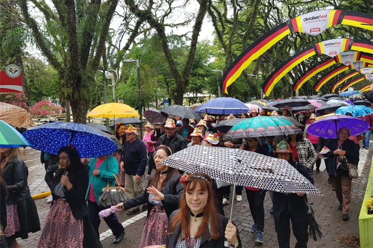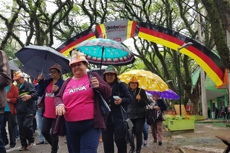 O dia mais alegre da 35ª Oktoberfest começou. Nesta terça-feira, 15 de outubro, a programação da Festa da Alegria é voltada à Maturidade Ativa, que tradicionalmente reúne milhares de pessoas. A programação teve início às 9 horas, com recepção e cadastramento dos grupos na Praça Getúlio Vargas, em frente à Catedral, no centro da cidade. Às 9h30, mesmo com a chuva, eles seguiram em caminhada pela rua Marechal Floriano, até o Parque da Oktoberfest. “Este é um dos dias mais animados da nossa Festa, conhecida, sobretudo, pela alegria. Nossa expectativa é de reunir um grande público”, destaca o presidente da 35ª Oktoberfest, Ênio Ernesto Wermuth.