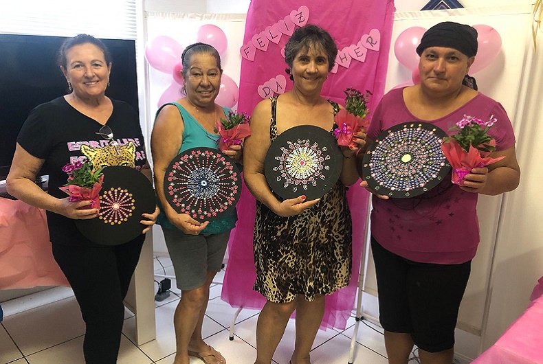 O grupo, que toda semana se reúne para realizar oficinas de arte terapia, confeccionando mandalas, dessa vez ganhou de presente a exibição de um filme de comédia e serviço de massagem. Ao final, a confraternização foi encerrada com a entrega de uma flor para cada participante.