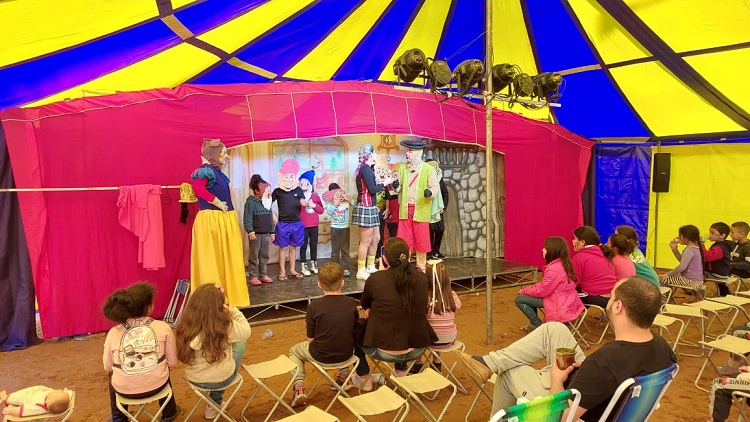 A tarde desse sábado, 10, foi de muita risada e diversão na praça do Loteamento Beckenkamp. O local sediou a primeira de três apresentações do espetáculo Xebebéu, dentro do projeto A Magia do circo nos bairros. Um lonão de circo foi montado para acolher o evento.