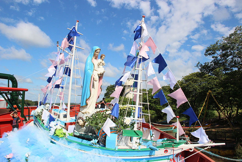 A devoção à Nossa Senhora dos Navegantes no Brasil vem da colonização ibérica. Portugueses e espanhóis pediam a proteção de Maria, mãe de Jesus, durante as grandes navegações. Nas representações da santa, entre outras características, se destaca o Menino Jesus, que está no colo de Maria, segurando uma âncora, e o fato de a imagem estar sempre sobre um barco em águas revoltas – o que pode ser interpretado como uma referência à proteção oferecida por Nossa Senhora aos que navegam pela vida, mesmo durante as tempestades.