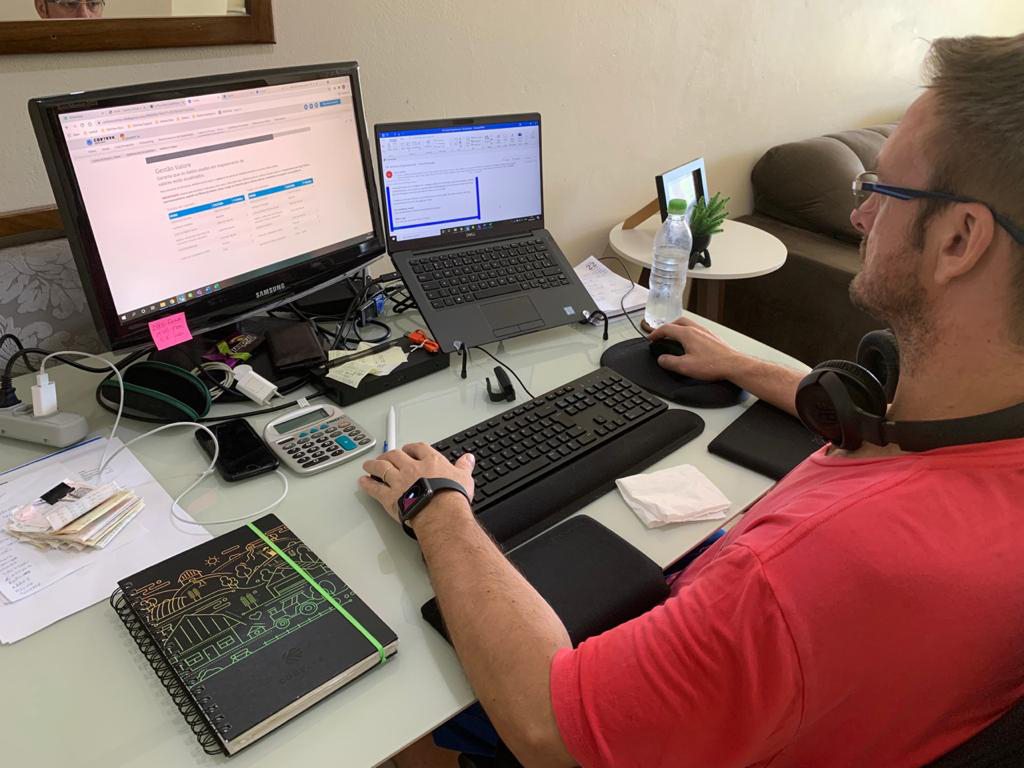 O primeiro desafio foi organizar a estrutura dentro de casa, como o espaço e a mesa de trabalho, já que para a parte de equipamentos houve suporte da empresa. Mais tarde, o complicado foi manter a disciplina de trabalho. “Frequentemente trabalho mais do que as oito horas diárias previstas, chegando a trabalhar 14 horas. A produtividade sempre manteve-se alta.”