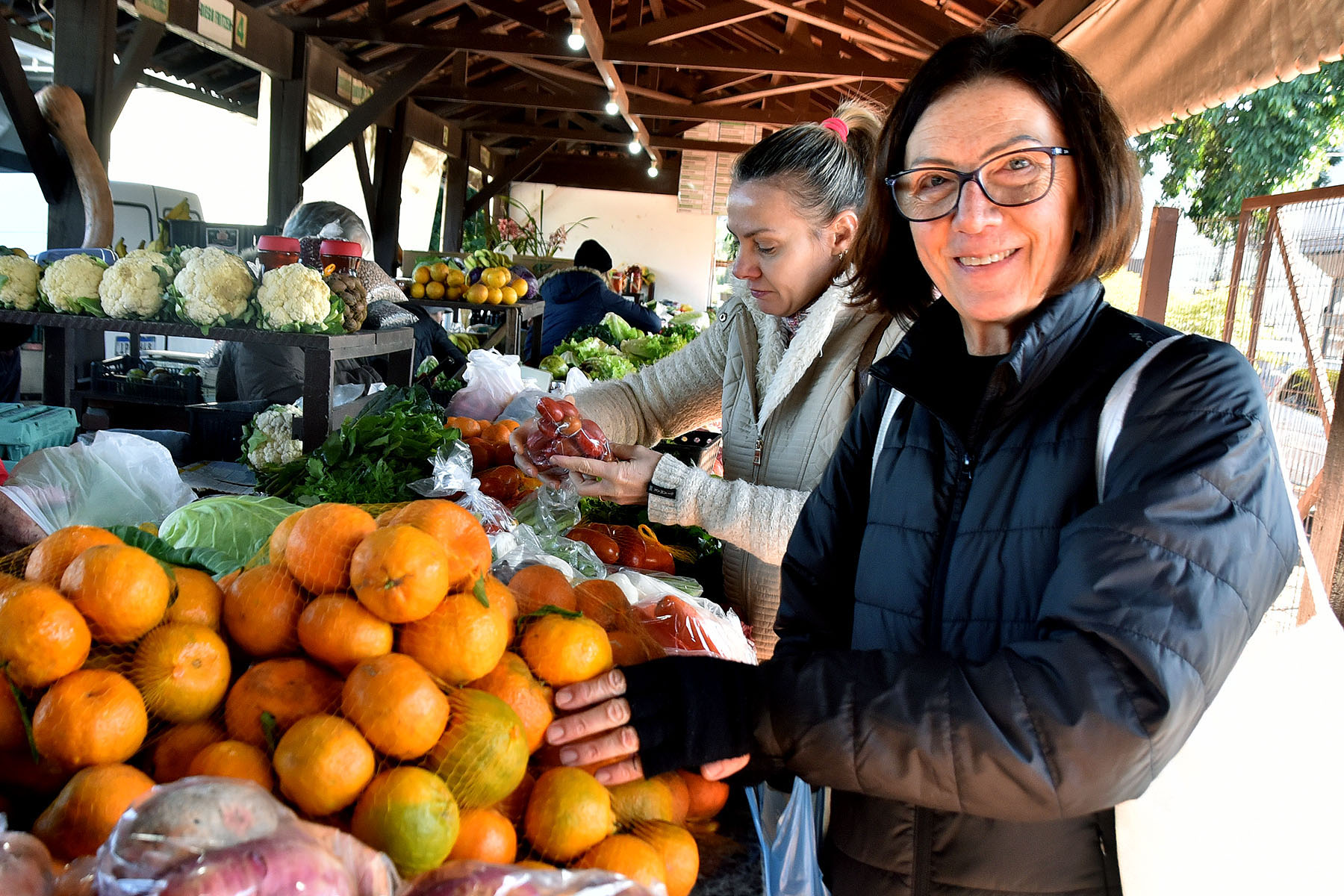 A aposentada Margareth Marquardt, de 67 anos, é cliente assídua da feira há cerca de cinco anos. A ida nas manhãs de quartas e sábados é parte de sua rotina. “Eu moro próximo e prefiro comprar na feira, pela variedade. Além disso, são produtos frescos, colhidos na véspera.”