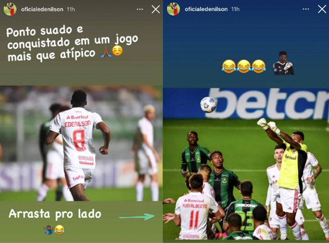 Edenilson valorizou a entrega dos jogadores na partida. “Primeiro, parabenizar a equipe. Jogo difícil. A equipe do América veio com proposta de competir bastante. A gente acabou entrando um pouco desligado. O professor chamou atenção no intervalo, a gente voltou melhor. O professor tem passado para a gente sair com sensação de deixar tudo para conquistar esse ponto. Porque lá na frente vai ser importante”, comentou.