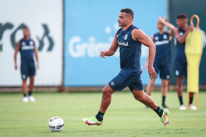 Diego Souza teve diagnosticado um edema muscular na coxa esquerda antes do segundo jogo da final do Gauchão. Ficou no banco contra o Ypiranga, mas sem ter condições de jogo, e agora se reveza entre fisioterapia, tratamento e trabalhos físicos, como ocorreu nesta quarta-feira.
