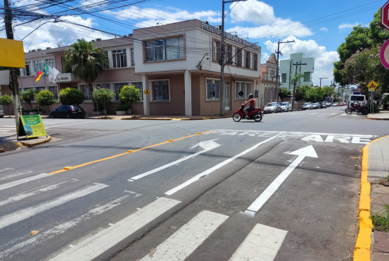 Motoristas que forem ingressar ou cortar a Rua Osvaldo Aranha pela Rua General Osório precisam estar atentos a alterações feitas no trânsito do local, que fica na esquina onde está localizada a Prefeitura, em Venâncio Aires. Para quem pretende cortar a via principal, em direção à Rua Tiradentes, está colocada uma seta junto ao lado direito da via fazendo o direcionamento, e para quem for ingressar na Osvaldo Aranha, a seta para dobrar está ao lado esquerdo.