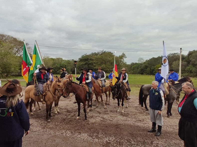 Com a presença dos cavaleiros, que participaram da missão na Serra Gaúcha, a concentração teve início às 8 horas, na sede da entidade. Logo mais, às 9 horas, houve uma sessão solene, com a participação de representantes dos 15 municípios que integram a 5ª RT.