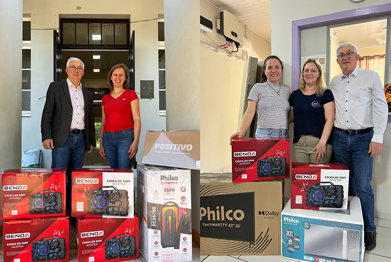 Depois de ter realizado a doação de mais de 8 mil itens durante os meses de maio e junho, a cooperativa organizou para o chamado “Dia C” uma programação especial, com ações sociais, campanha de vendas solidária e mobilização para doação de sangue. Uma delas aconteceu ainda no dia 14 de junho, quando o presidente da Unimed VTRP, o médico Neori Gusson, esteve em Sinimbu para entregar donativos para duas escolas fortemente atingidas pela enchente de maio no município.