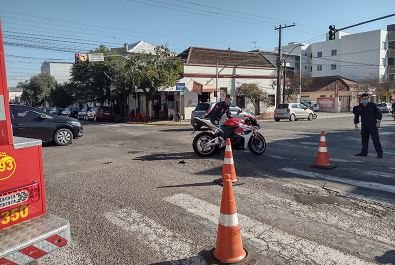 Dois homens, pai e filho, ficaram feridos em um acidente de trânsito na manhã deste sábado, 3, no Centro de Santa Cruz do Sul. Eles tripulavam uma motocicleta que se envolveu em uma colisão com uma caminhonete S10, no cruzamento das ruas Venâncio Aires e Senador Pinheiro Machado, por volta das 10h30.