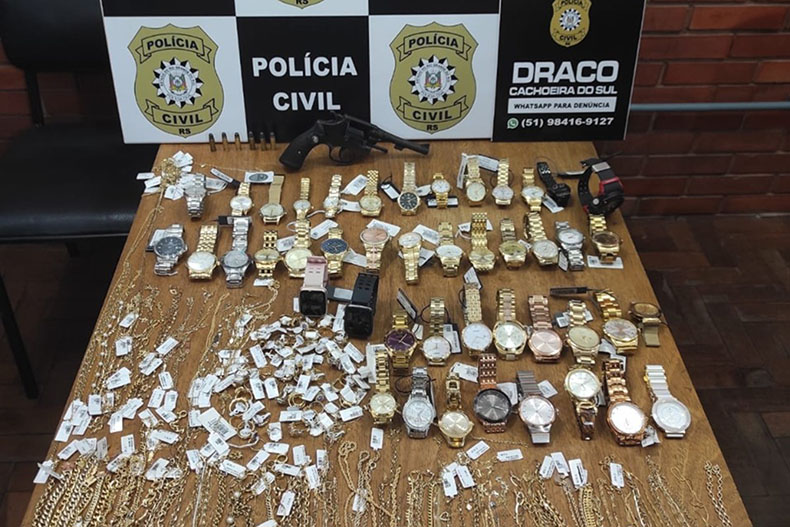 Na ação foram apreendidos 45 relógios, 75 anéis de ouro e 194 correntes de ouro. O montante foi avaliado pela polícia em R$ 1,03 milhão. Os dois autores do roubo, de 22 e 40 anos, foram presos e encaminhados ao Presídio Estadual de Cachoeira do Sul. Seus nomes não foram revelados pelas autoridades policiais.