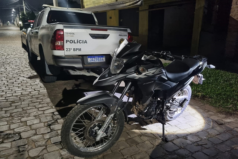 Ao retornarem ao local, moradores da residência perceberam a presença dos policiais e correram pulando diversos pátios sendo possível visualizar três homens. Um deles foi detido e informou que fugiu porque dentro da casa havia uma motocicleta em situação de furto assim como entorpecentes, o que foi confirmado pela guarnição.