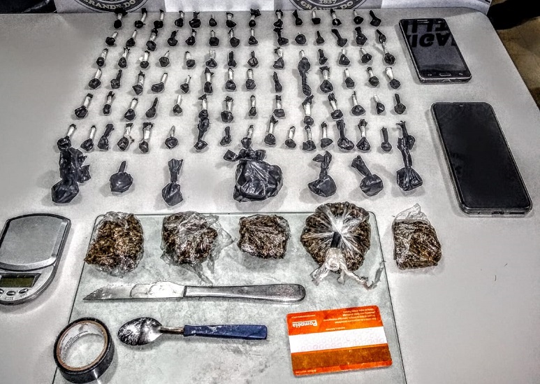 Foram apreendidas 88 porções de cocaína, pesando 139 gramas, cinco porções de maconha, pesando 137 gramas, uma balança digital e um telefone celular. O homem, de 19 anos, recebeu voz de prisão em flagrante, foi apresentado na Delegacia de Polícia e, posteriormente, conduzido ao Presídio Estadual de Cachoeira do Sul.