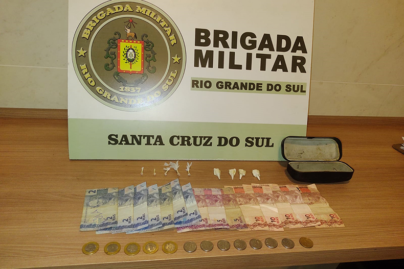 A Brigada Militar prendeu dois homens pelo crime de tráfico de drogas em Santa Cruz do Sul. A ação aconteceu por volta das 19h45, no Bairro Pedreira. Policiais militares flagraram um dos envolvidos, de 37 anos, realizando parte da venda de drogas. O homem pegava o dinheiro com usuários e levava até outro intermediário, que fazia a entrega dos entorpecentes ao comprador.