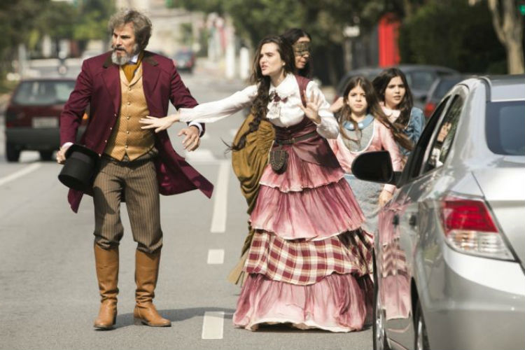 Marocas (Juliana Paiva) vai guiar a mãe pelas ruas com uma venda, assim como Samuca fez com ela, para que a matriarca não perceba que já se passaram 132 anos. A família vai ser xingada por motoristas, mas vai conseguir chamar um táxi.
