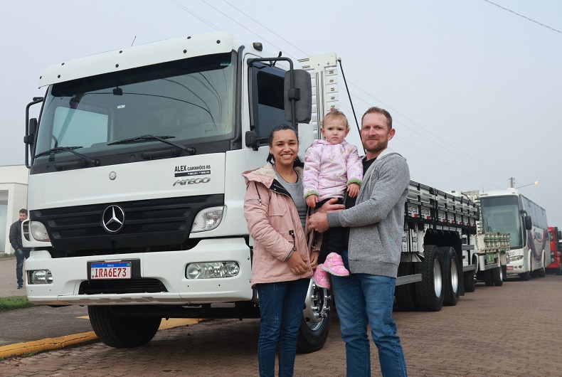 Nascido em Monte Alverne, Dominicos Miguel Schneiders foi participar do desfile da comunidade Nossa Senhora de Lourdes junto da família. A esposa, Adriana Nopes, e a filha de 2 anos, Julia Nopes Schneiders, fizeram companhia na celebração. Dominicos é caminhoneiro desde 2010, mas foi a segunda vez que se fez presente na festa em Monte Alverne. “Gosto bastante de participar. Pensava em ser caminhoneiro desde criança e hoje é um sonho realizado”, declarou.