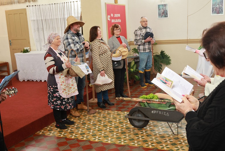 Missa teve encenações de moradores que fizeram referência às origens e ao trabalho dos imigrantes com a produção de alimentos