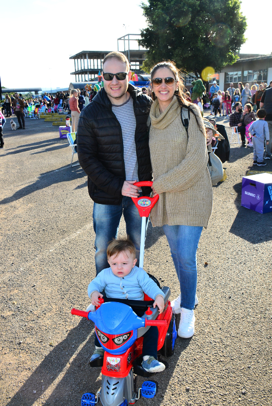 Quem aproveitou a tarde para prestigiar a programação foi o casal Douglas e Beatriz Sehnem. Eles levaram o pequeno Francisco, de 1 ano, para conferir as atrações.