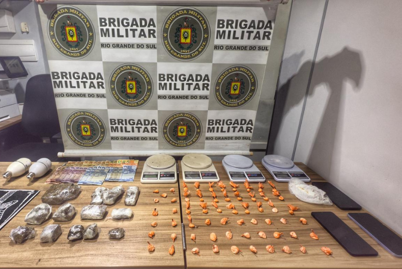 Já na cozinha da casa, foram encontradas porções de maconha, totalizando 661 gramas, e R$ 869,00 em dinheiro. Os itens foram apreendidos, assim como três celulares, quatro balanças de precisão, um caderno de anotações e duas câmeras de monitoramento.