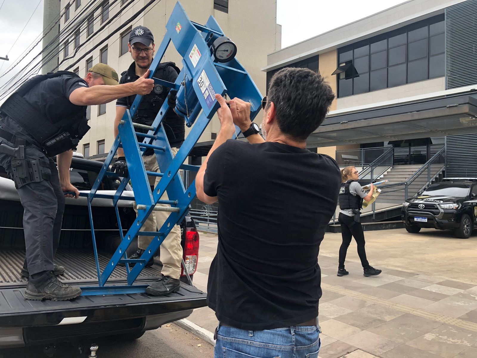 A Polícia Civil, por meio da Delegacia de Repressão às Ações Criminosas Organizadas (Draco), apreendeu uma prensa utilizada para compactar tijolos de cocaína e material para embalar os ilícitos na manhã desta sexta-feira, 11, em Santa Cruz do Sul. A prensa estava escondida na garagem de uma residência no Bairro Bom Jesus, onde moram um casal e os filhos. Eles não estavam em casa no momento da ação.