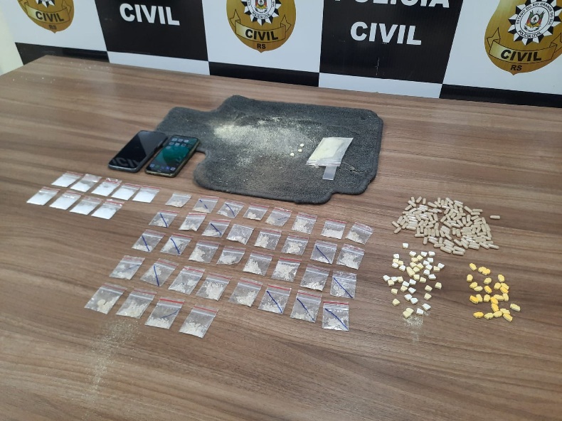 A Draco apreendeu 118 cápsulas de MDMA, 36 saquinhos de MDMA em cristal, nove sacos de quetamina e diversos comprimidos de ecstasy. O homem não tinha antecedentes criminais e foi encaminhado ao Presídio Regional de Santa Cruz do Sul.