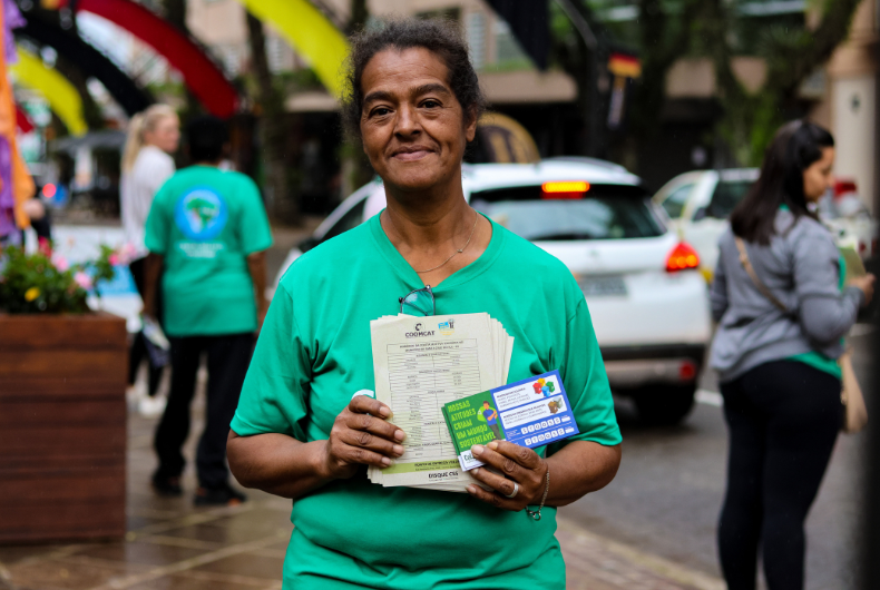 A ação teve a parceria da Cooperativa de Catadores e Recicladores de Santa Cruz do Sul (Coomcat), da Fupasc e do Coletivo Lixo Zero. Mesmo em meio à chuva fraca, a atividade registrou a participação de diversas pessoas que foram em busca de informações. A coordenadora-geral da Coomcat, Vera Lúcia Flores da Rosa, destacou que o objetivo era conscientizar a população sobre a importância da separação e da destinação correta dos resíduos.