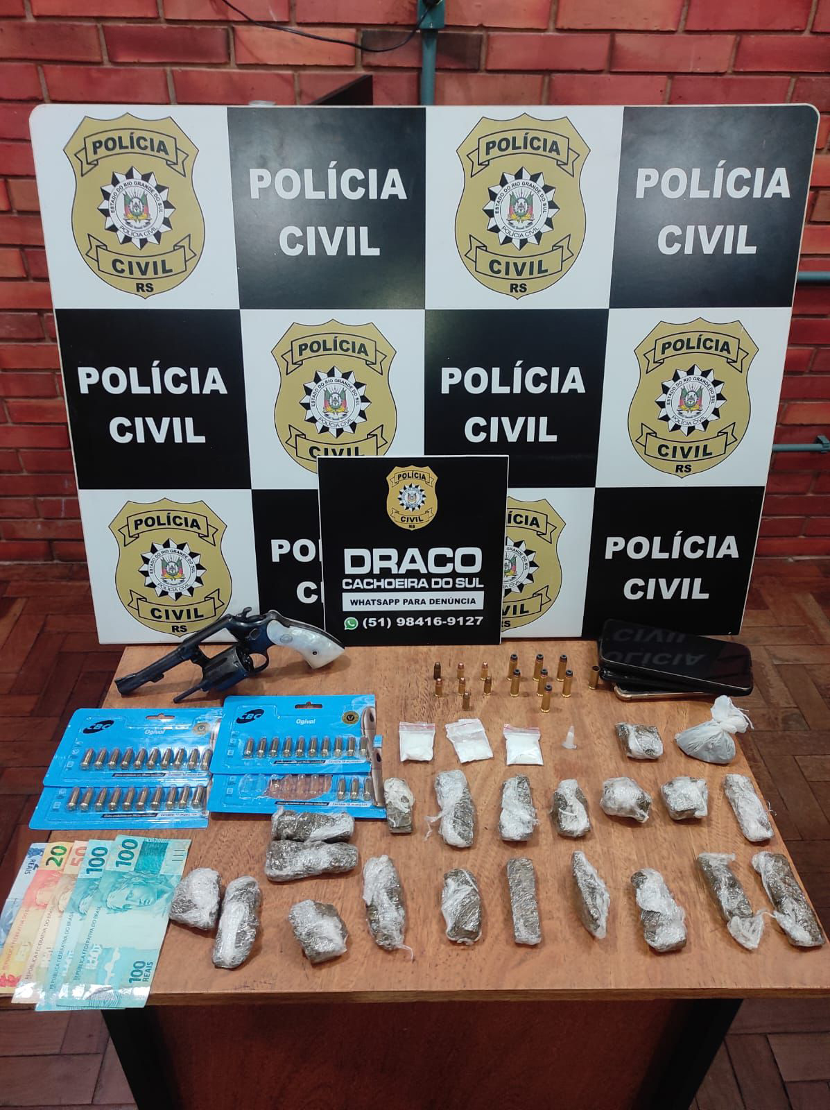 Os três capturados, que são de Cachoeira do Sul, terminaram autuados em flagrante por tráfico de drogas, associação para o tráfico e posse irregular de arma e munições.