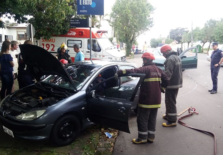 Duas mulheres e duas crianças ficaram feridas na tarde deste domingo, 30, após uma colisão na esquina da Rua São José com a Sete de Setembro, no Bairro Goiás, em Santa Cruz do Sul. O acidente envolveu um Peugeot de Encruzilhada do Sul e um Golf de Santa Cruz. A colisão aconteceu por volta das 16h30. Conforme o condutor do Peugeot, ele aguardava a carreata dos simpatizantes de Jair Bolsonaro (PSL) passar, há pelo menos 10 minutos, quando um condutor fez sinal para ele ingressar da Sete de Setembro na Rua São José. Segundo o motorista, ao ingressar na via, o Golf apareceu na pista e os dois veículos acabaram colidindo.
