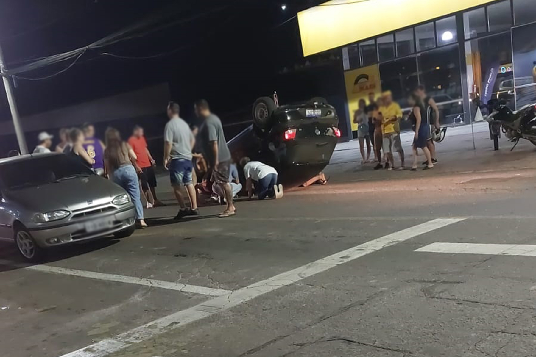 Um capotamento no Centro de Venâncio Aires deixou pelo menos duas pessoas com ferimentos, a princípio leves, na noite dessa sexta-feira, 11. A colisão, que ocorreu por volta de 21h45, na esquina das ruas Osvaldo Aranha e 15 de Novembro, envolveu um Volkswagen Gol e um Chevrolet Celta.