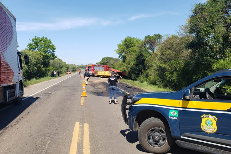 Um automóvel Audi A4 com placas de Encantado teria invadido a pista contrária, batendo de frente com um caminhão com placas de Nova Santa Rita que trafegava no sentido oposto. O condutor e caroneiro do veículo morreram no local.