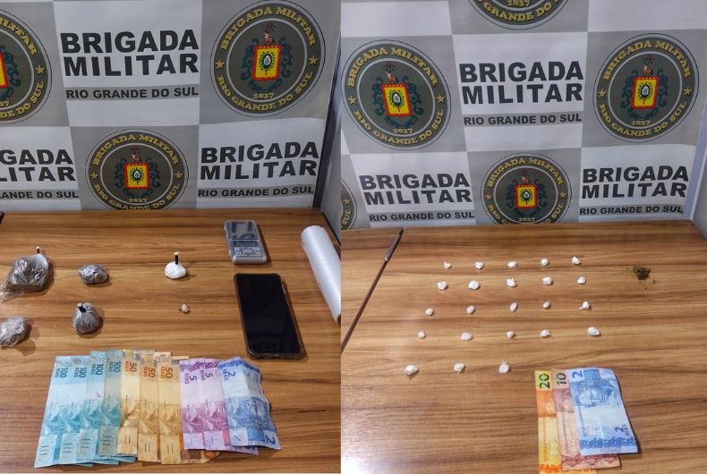 O segundo caso aconteceu na madrugada deste domingo, 29, durante patrulhamento no Bairro Batisti. A Brigada Militar recebeu informações sobre um indivíduo que estaria traficando drogas em um endereço conhecido por ser ponto de venda. A informação também indicava que o suspeito escondia o conteúdo em um local próximo.