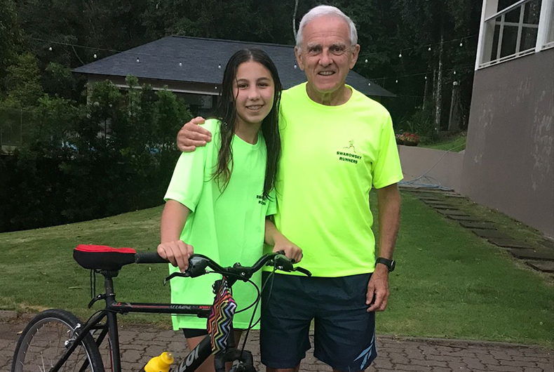 No primeiro treino para o Duathlon Lago Dourado, Mariana completou as três voltas em aproximadamente uma hora. Paulo acredita que fará o trajeto da corrida em cerca de 40 minutos, o que já dá uma prévia do tempo que irão registrar na prova. Paulo está treinando de forma intensa para uma maratona em dezembro. Inclusive, já participou de ultramaratona. “A Mariana é tranquila, mas estamos trabalhando a questão da ansiedade. Ela é competitiva, puxou pelo avô”, brinca.