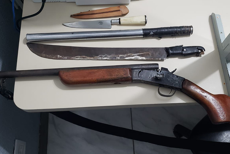 Segundo informações da Brigada Militar, dentro do carro foram localizados no banco traseiro uma espingarda calibre 20, um facão, um bastão de ferro e uma faca com bainha.