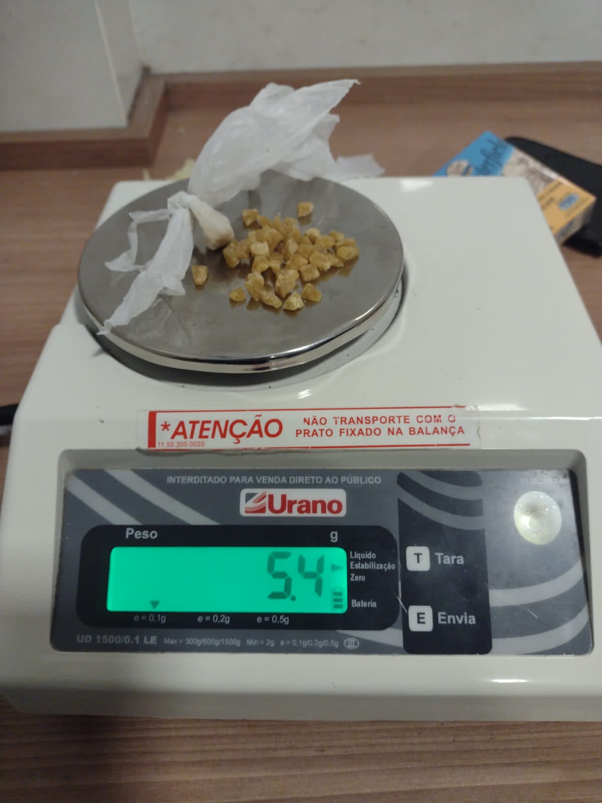 - 46 pedras de crack fracionadas pesando 5,4 gramas