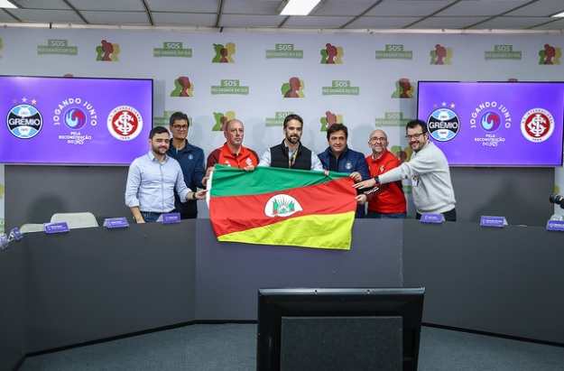 Internacional e Grêmio cederão espaços em suas propriedades comerciais para companhias que doem dinheiro, abram linhas de crédito, cedam materiais ou bonifiquem produtos para famílias e/ou pequenos comerciantes das regiões afetadas pelas enchentes. Para empresas que invistam na reconstrução do Rio Grande do Sul. Até o fim do primeiro turno do Campeonato Brasileiro, as empresas que aderirem ao projeto terão exposição nos uniformes e em propriedades digitais e físicas de Grêmio e Inter, a depender do montante da colaboração.