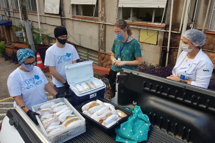 Mesmo com as ações reduzidas, em virtude da bandeira preta que vigora em todo o Estado, o Grupo do Bem se mobilizou e preparou uma ato de solidariedade para as equipes que atuam na linha de frente de combate à Covid-19 no Hospital Santa Cruz, em Santa Cruz do Sul. Na tarde desta quarta-feira, 3, parte do grupo, que trabalha por meio de voluntariado e doações, entregou lanches para cerca de 80 profissionais que atuam no combate à doença.