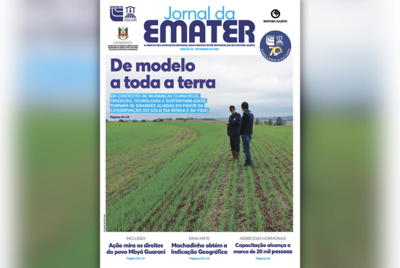 A Expointer 2025, em Esteio, é palco na manhã desta terça-feira, 2, para o lançamento oficial de mais uma edição do Jornal da Emater, parceria entre a Editora Gazeta, unidade da Gazeta Grupo de Comunicações, e a Emater/RS-Ascar. Em 40 páginas, essa tradicional publicação contempla muitos temas associados com a pequena propriedade rural de perfil familiar, vários deles diretamente relacionados com o Vale do Rio Pardo.