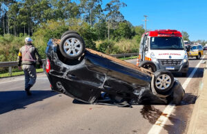 Carro capota em acidente na RSC-287