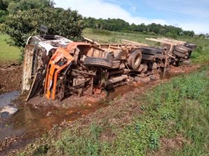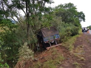 Acidente entre carro e caminhão deixa homem ferido