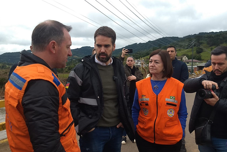 O governador Eduardo Leite esteve em Sinimbu na manhã deste sábado, 25. O chefe do Executivo gaúcho se reuniu com a prefeita do município Sandra Backes, além de ouvir demandas da comunidade e acompanhar o atendimento às famílias que tiveram danos por conta da destruição causada pelas águas do Rio Pardinho.