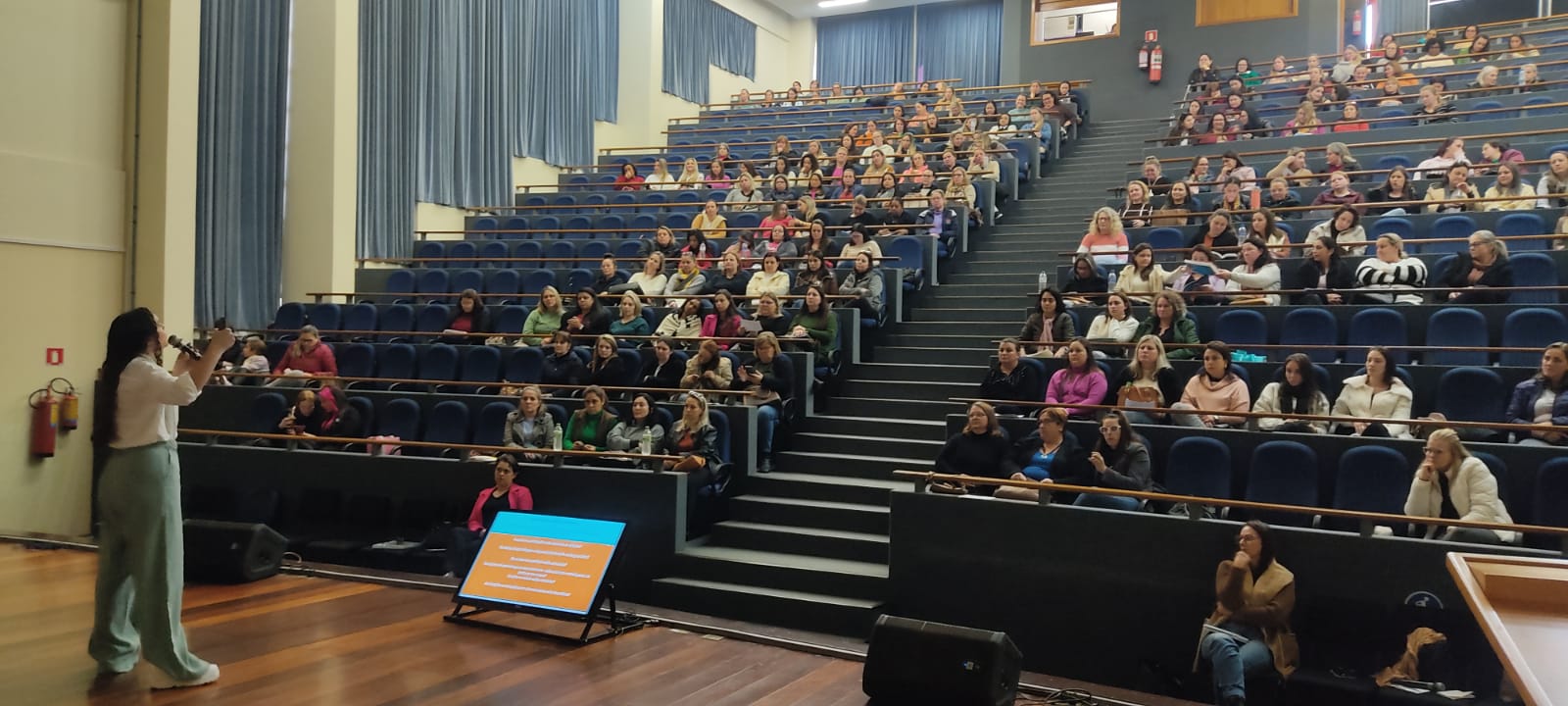 Já no Anfiteatro do Bloco 18, o assunto desenvolvidos com os educadores foi “As relações entre ensinar e aprender na educação infantil”, com a mestre em educação, Claines Kremer, e na sala 101, houve uma capacitação para as atendentes de Emeis.