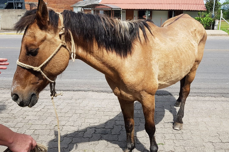 Conforme Marques, o animal estava caído no chão e passando mal quando foi feita a denúncia. “É uma égua idosa, dá pra ver pelos dentes e por outros sinais. Tem lesões nas patas, sarnas, fungos e uma leve desidratação, e apresenta marcas de que tem puxado carroças por um bom tempo”, avaliou o veterinário, em entrevista à Rádio Gazeta. Ele estimou que a idade da égua seja de aproximadamente 17 anos.