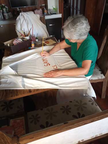 Em meio a lençóis, fronhas e cobertores, Carmen Heck, de 71 anos, sente-se realizada em poder fazer algo que parece simples, mas muito necessário em tempos de incertezas. Embora tenha passado grande parte de sua vida atuando como professora, as mesmas mãos que repassaram conteúdo a muitos estudantes santa-cruzenses agora contribuem para ajudar mais pessoas, só que de um jeito diferente: através da reforma de tecidos e da pintura de siglas para identificar roupas de cama.
