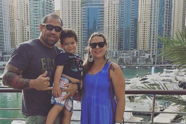 Patrícia com o marido e o filho João Vitor na Marina de Dubai, antes da pandemia