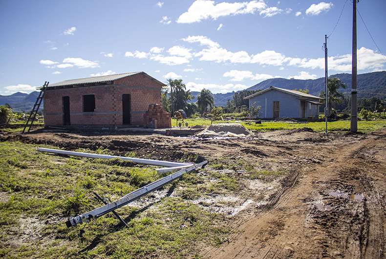Moradias são reerguidas em área que foi destruída. Uma delas está quase pronta